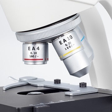 Dette er et robust elevmikroskop med metallkonstruksjon, binokulært hode og praktisk bærehåndtak. Det har 4x, 10x og 40x objektiver og fast pekepil i okularet, noe som gjør det enklere for lærere å veilede elever.