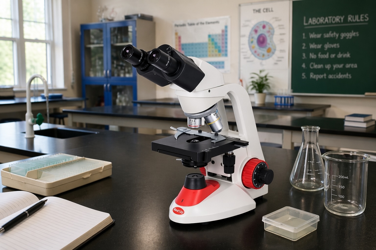 I skolelaboratoriet stilles det andre krav til utstyr enn i et forskningsmiljø. Mikroskopet skal ikke bare levere optisk kvalitet, men også tåle hyppig bruk, varierende erfaring hos brukerne og begrenset tid til vedlikehold. RED132 Binokular 40X er utviklet med nettopp dette i tankene: et robust elevmikroskop som kombinerer solid mekanikk med optikk tilpasset naturfag på grunnskole- og ungdomstrinn.